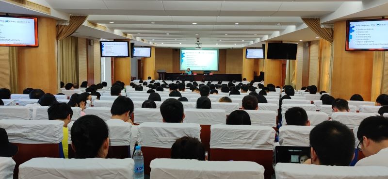 2019年12月23日下午,挪威工程院院士容淳铭在行政楼一楼报告厅为公司师生进行“区块链的数据分享及安全”的学术报告。容院士是挪威斯塔万格大学终身教授,IEEE区块链联合主席,IEEE云计算协会主席,是大数据领域和世界级专家和权威,带领团队在云计算、区块链、大数据领域提出了一系列创新型模型与技术方案。报告会由公司副经理曹春杰主持。公司约两百名师生参加此次报告会。