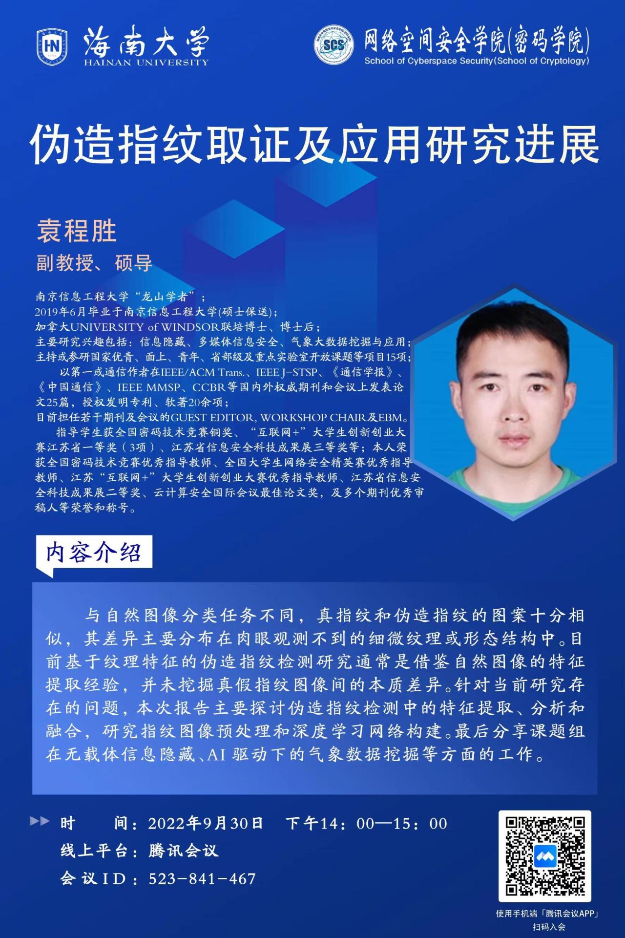 【学术交流】伪造指纹取证及应用研究进展 - 袁程胜