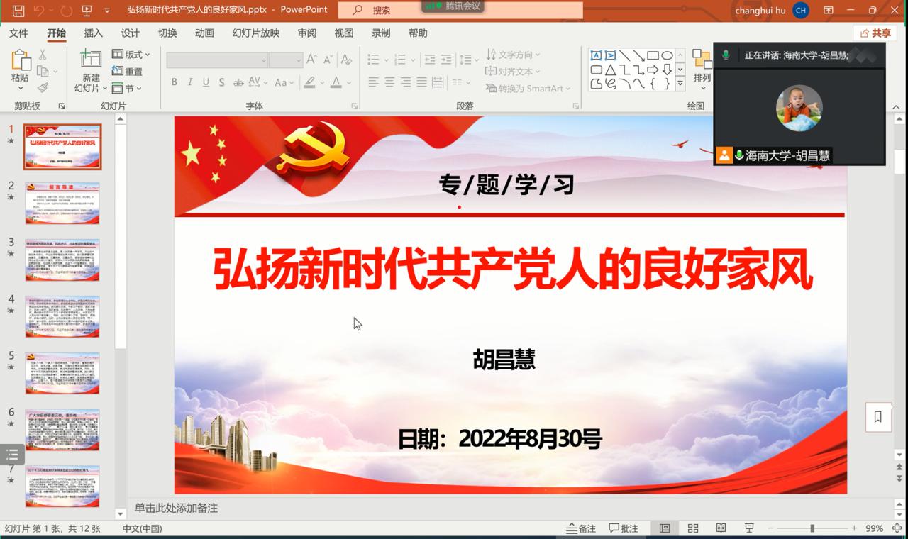 2022年8月30日,伟德体育网络空间安全系教工党支部通过线上会议的方式召开支部会议,组织开展七八月份的组织生活和“弘扬良好家风喜迎党的二十大”主题党日活动。