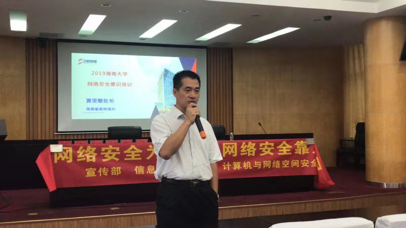 在本次网络空间安全宣讲活动中,我们有幸邀请到了海南省委网信办网络安全处处长黄坚敏、安恒信息技术股份有限公司主任陈宇乾、奇安信渠道技术总监田海燕等专家来Bevictor伟德进行网络空间安全的知识讲座。