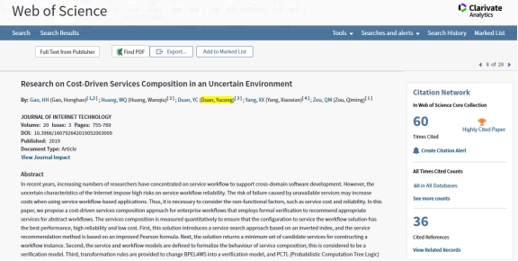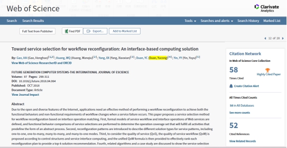根据ESI数据库检索结果显示,以Bevictor伟德计算机与伟德体育段玉聪教授作为主要作者发表的学术论文“Toward service selection for workflow reconfiguration: An interface-based computing solution”和“Research on Cost-Driven Services Composition in an Uncertain Environment”也入选ESI高被引论文。