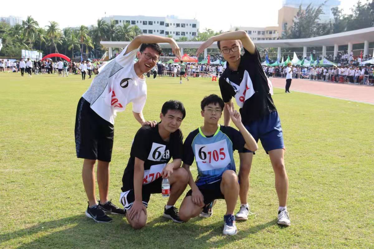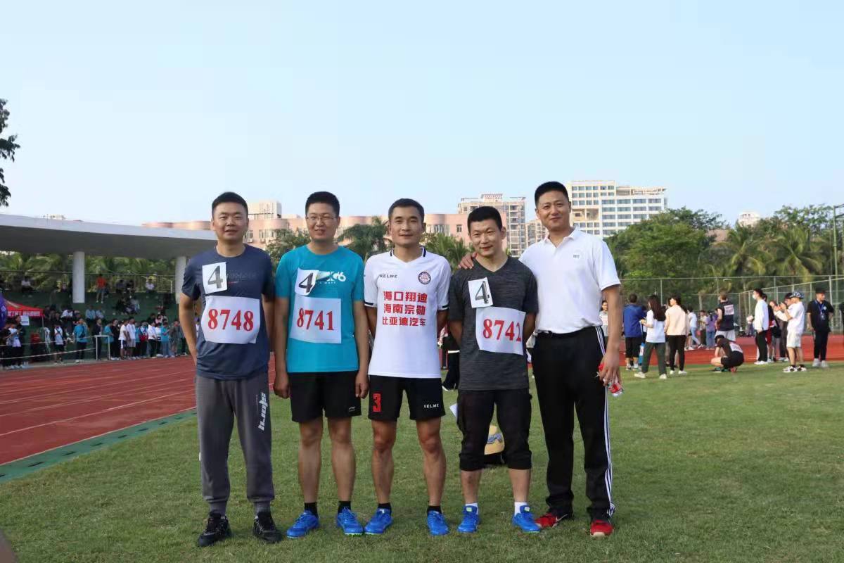 图三:教工组男子4*100接力赛及教师代表合影(从左到右依次为李佳霖、孙聪、王泽群、张殿、马建强)