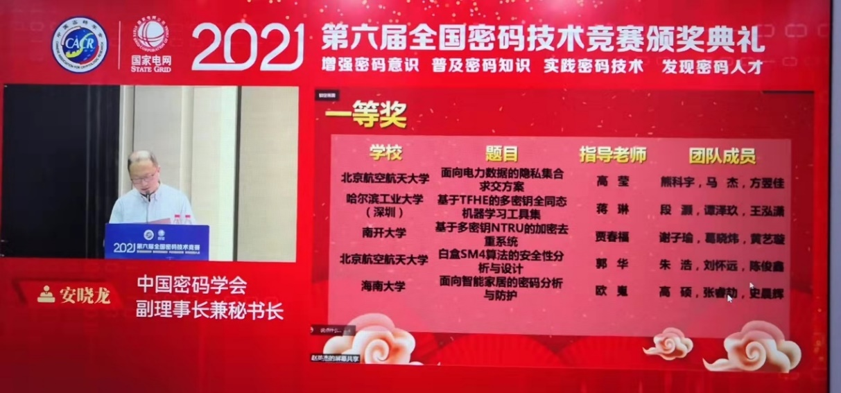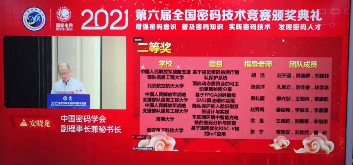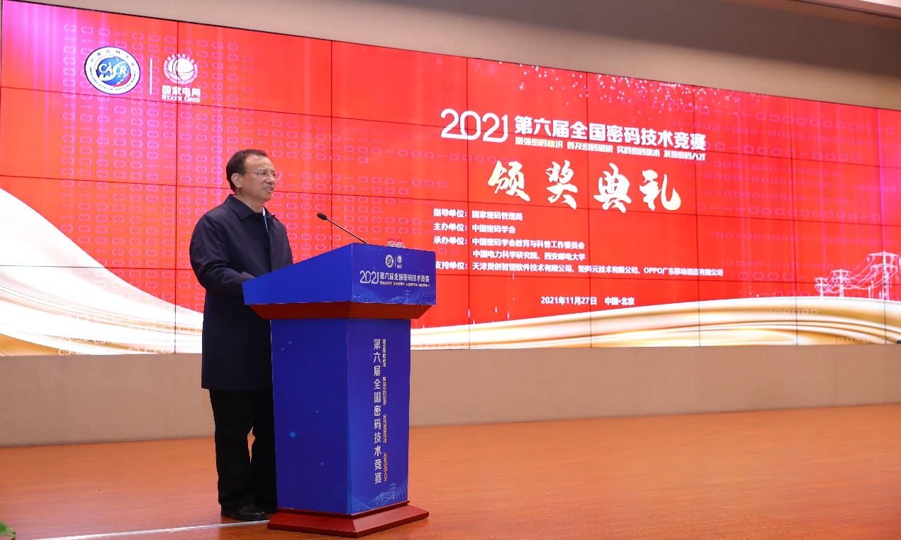 中国密码学会教育与科普工作委员会主任委员李子臣教授主持颁奖典礼
