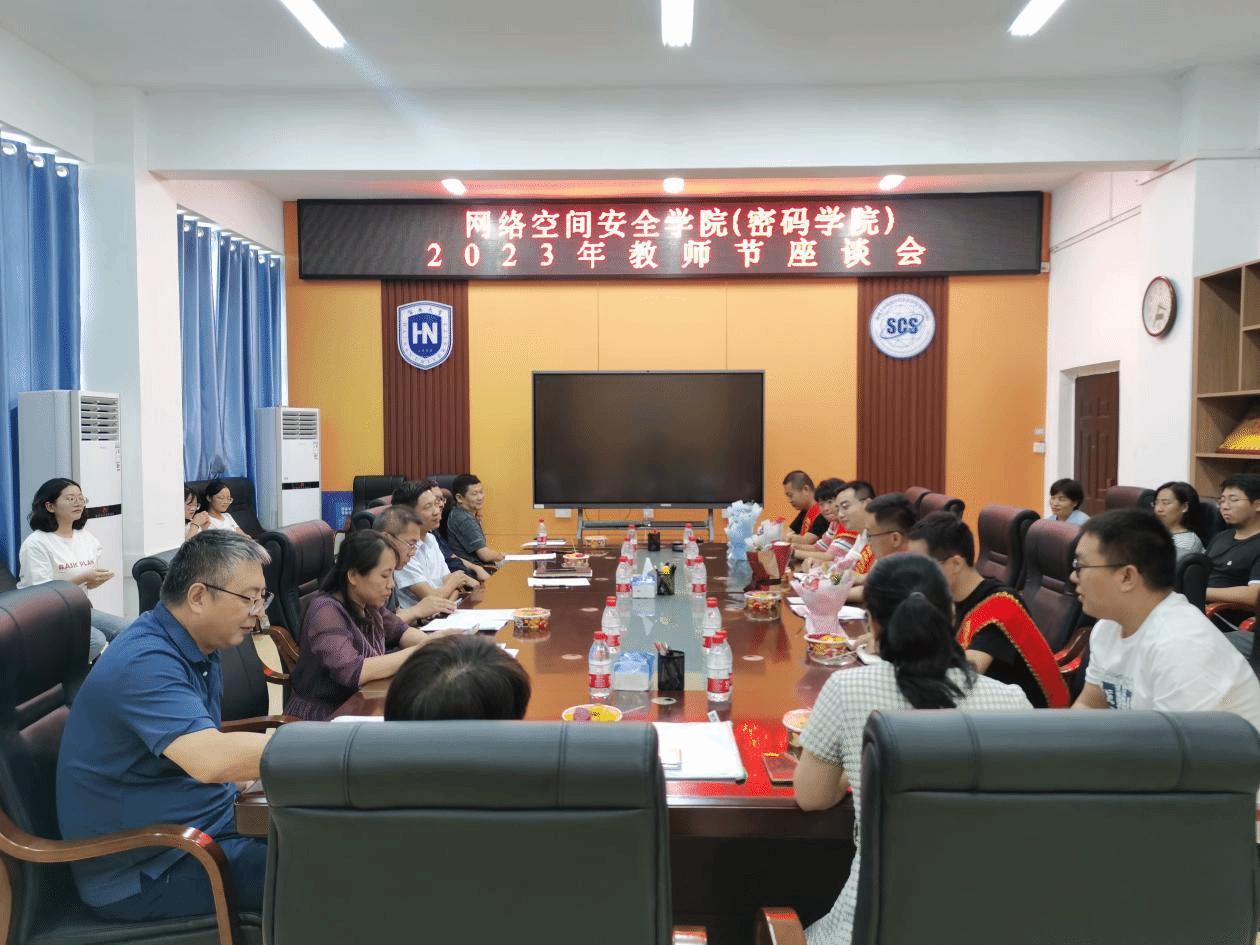 新入职教师代表邢剑副教授、教师代表张树东教授、员工代表樊雪峰同学在座谈会上分别作了发言。邢剑副教授说,加入网安大家庭后,深刻感受到了团结向上、充满朝气的公司氛围,公司的关系和同事的帮助,激励他今后努力工作、积极奉献。张树东教授说,感谢公司为他们提供了良好的条件保障,公司是一个温暖的大家庭,作为公司的一份子,将努力培养好员工,用优异的科研成果来回报公司和公司。博士生代表樊雪峰同学全体员工表达了对教师的感谢之情,感谢老师们用知识和智慧的力量培养员工,让员工能够在浓厚的学术氛围中成长。