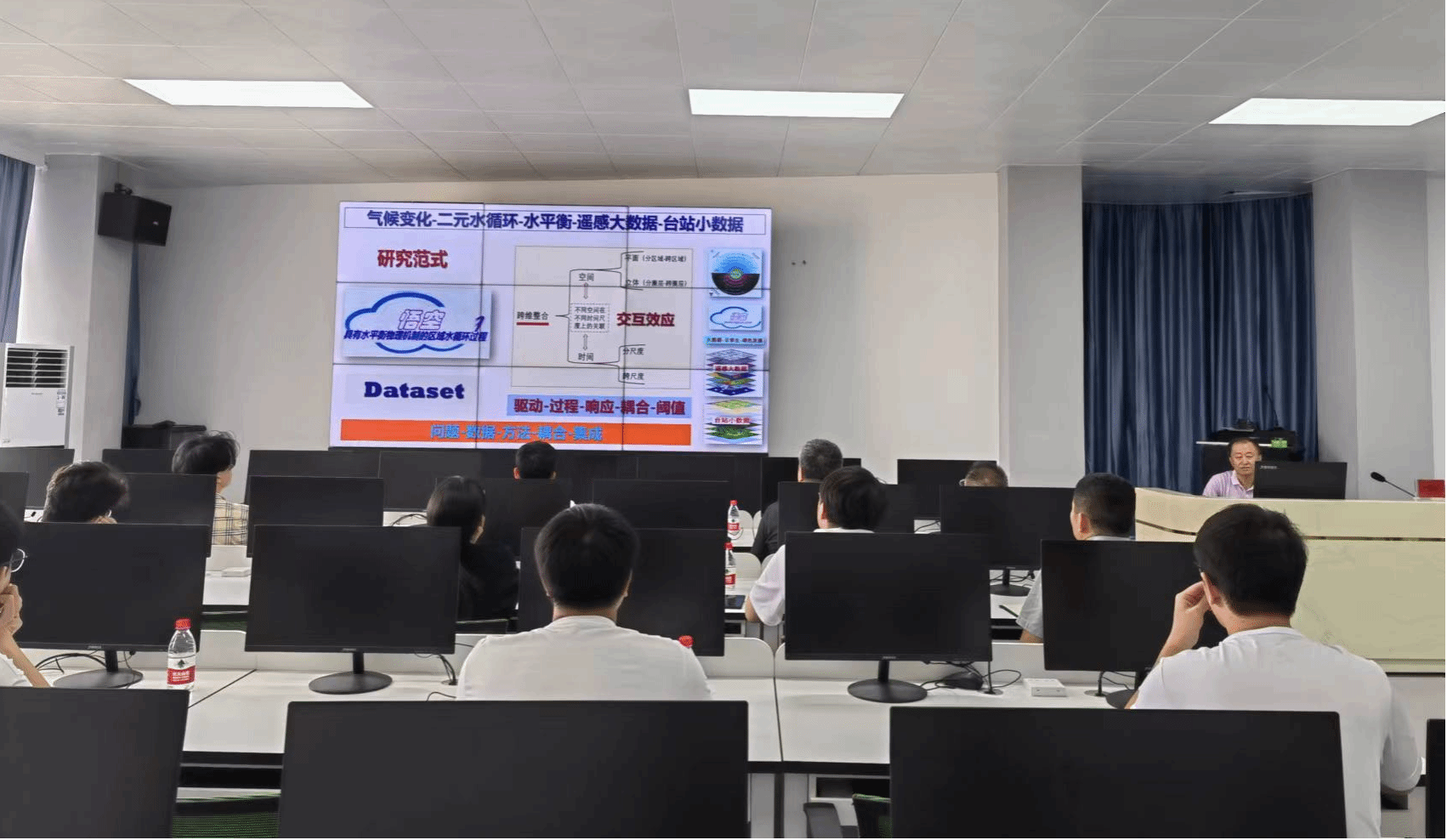 宫辉力教授以“气候变化-二元水循环-地质灾害-调控方案”为题,系统介绍了基于遥感大数据、台站小数据与悟空云平台深度结合的基本思想、涉及的主要技术方法及其在气候变化、驱动二元水循环与地下水位变化耦合演化机理及调控中的应用。