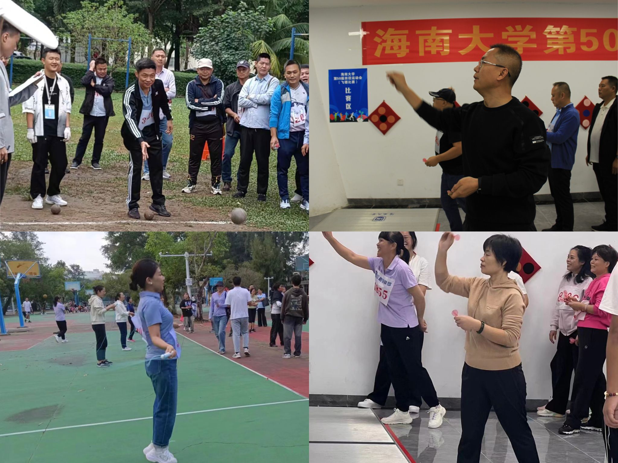左下:郭祯副经理跳绳比赛 右下:朱瑛主任飞镖比赛