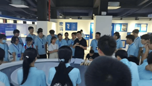 在基地内,营员们首先观看了关于密码和现代应用的多媒体展示,深刻了解了密码在信息安全、国防安全、金融安全等领域的重要性。随后,在讲解员的带领下,营员们参观了密码人才培养、密码发展史等多个功能区,通过互动体验、模拟加密解密游戏等形式,直观感受了密码学的魅力。